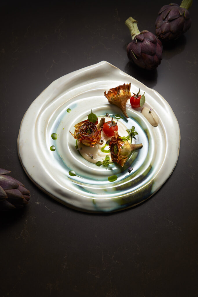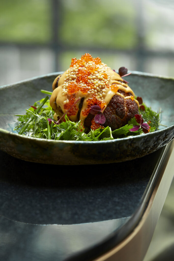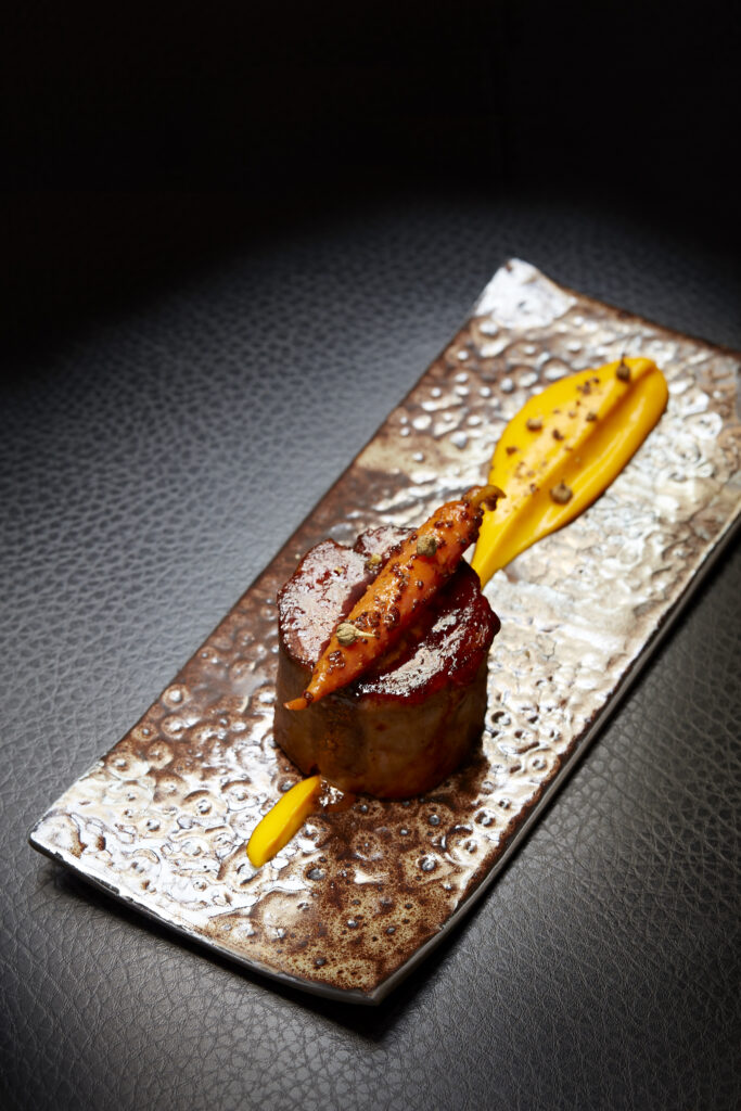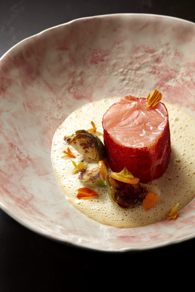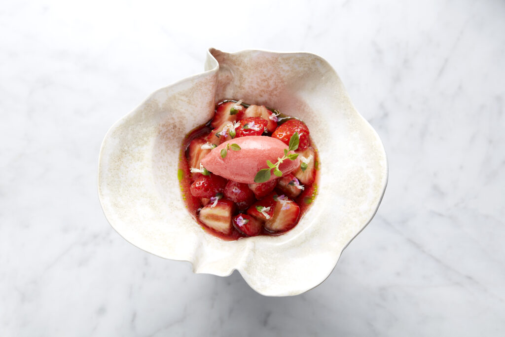 Je vous recommande son menu dégustation avec le chou-fleur grillé assaisonné de yaourt grec, œuf de poisson volant, œufs de homard et une pointe de yuzu suivi par l’artichaut croustillant, frit à la juive, basilic, sauce césar, puis un saumon cuit à basse température recouvert d’épice tandoori et de fleurs, accompagné d’une sauce orange, kumquat frais. Pour finir, le tartare de fraise au basilic, sorbet fraise maison, sirop de fraises perlé au basilic. Quel régal ! Des plats élaborés avec sophistication et délicatesse mêlant subtilement les épices et les aromates. La carte des vins est extrêmement riche avec essentiellement des vins français.