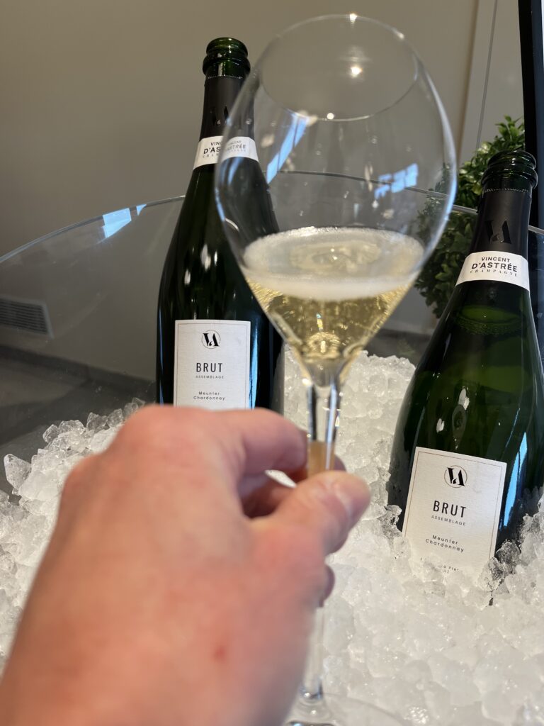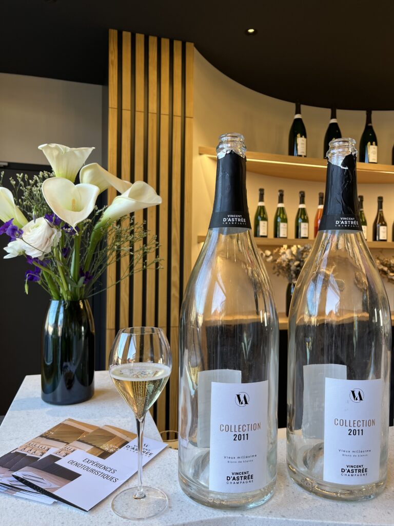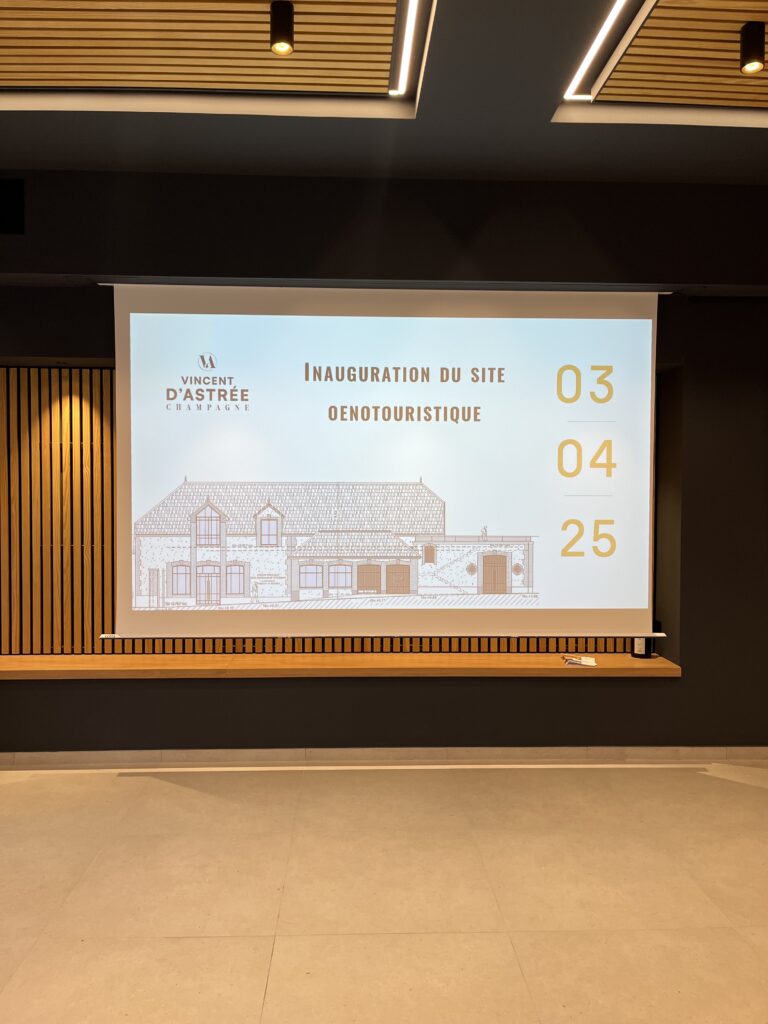 Aux commandes, l’architecte Vincent Fierfort et l’architecte d’intérieur Claire Toussaint. Tout s’est accéléré après les vendanges 2023, de décembre à mars 2025 l’œuvre s’achève à l’image dynamique de cette coopérative qui n’a pas cessée de se réinventer. En effet depuis une poignée d’hommes à ses débuts, par le jeu des fusions et de mise en commun des énergies, voilà que Vincent d’Astrée a su se créer une nouvelle identité de marque, de visuel jusqu’au logo. Elle est bâtie autour des cépages emblématiques Meunier et Chardonnay qui s’assemblent dans son Brut sans année pour parfois prendre élan seul selon les cuvées et les