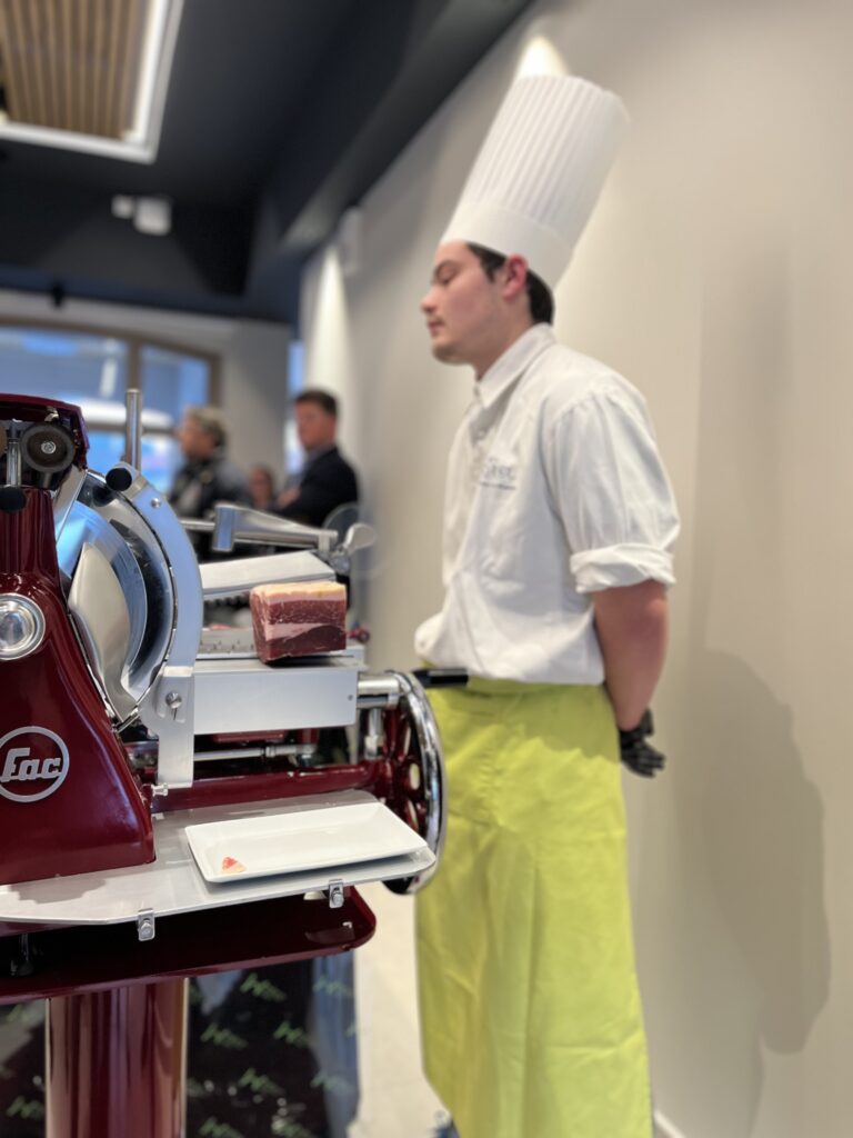 Toujours à l’étage, un atelier avec des accords fromages et Champagne Vinothèque 2007, en dégorgement 2024. Intense et crayeux entre le champignon blanc, le fruit confit, la pêche au sirop et le cédrat en confiture. En bouche, panification, levure et fruits à coque. Le palais ample et poudré sur la fraicheur. La finale est sur le grain de craie et le champignon.