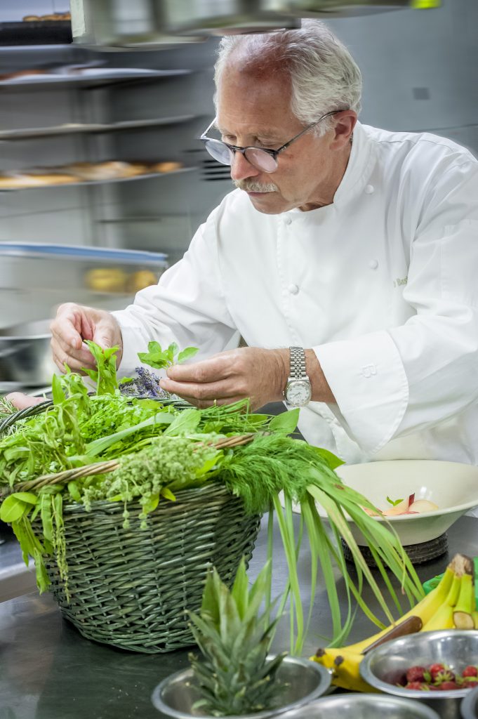Né à Limoges en 1952, Jacques Chibois est un chef talentueux, respecté de tous ses pairs. Après avoir travaillé pour de grands noms de la gastronomie française comme Roger Vergé, Louis Outhier, il est devenu chef du Royal Gray d’Albion à Cannes où il obtient ses deux étoiles. La Bastide Saint Antoine, située sur les hauteurs de Grasse, ce Relais & Château, tel un bijou situé dans un écrin de verdure, voit le développement du goût de Jacques pour les produits du terroir. Il crée sa propre huile d’olive qui est délicieuse. Le lieu est marqué par sa forte personnalité aussi bien son restaurant gastronomique, que l’hôtel et les somptueux jardins qui l’entourent. Ses plats aux accents du Sud, tout en finesse, sont élaborés tels des tableaux aux couleurs de la Provence et aux saveurs uniques bien caractéristiques de la cuisine de Jacques Chibois. Il a instruit toute une génération de jeunes apprentis, devenus chefs aujourd’hui. Qui n’est pas fier d’avoir été initié à la gastronomie française dans ses cuisines ? Tout en étant exigeant avec les autres comme il l’est avec lui-même.