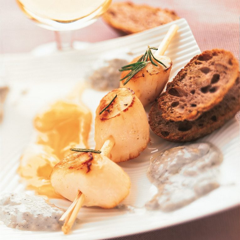 Saint-Jacques poêlées au romarin et vinaigrette au Sainte Maure de Touraine