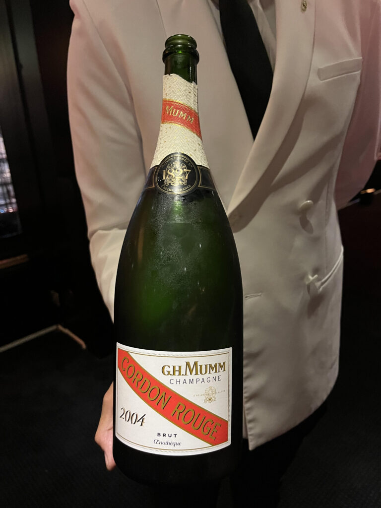 Champagne Mumm Cordon Rouge « exprime des notes de toast, de croissant et de crème voilant un fruit rouge (cranberry, prune) et l’orange sanguine. Suave, de bulle ample et crémeuse avec une fraîcheur tonique et une aspérité poudrée qui rend la finale sapide. » BS