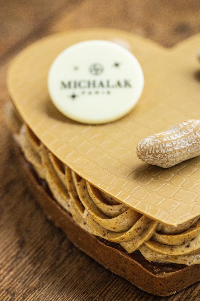 Des pâtisseries aux saveurs et aux univers différents : le mille-feuille façon Paris-Brest à la cacahuète pour un instant savoureux et gourmet et le cœur fleur de violette pour une Saint Valentin empreinte de douceur et de romance avec son biscuit à l’amande surmonté d’un crémeux cassis, confit aux fruits rouges le tout avec une ganache montée à la violette.